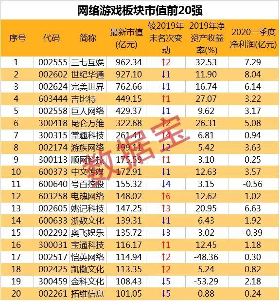 網絡游戲板塊市值規模超6500億,三七互娛雄霸榜首
