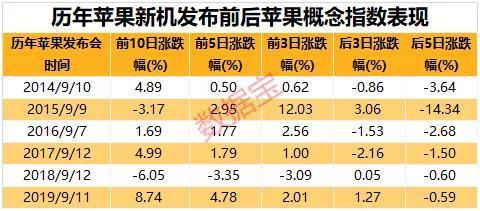 雖然上述幾大特性或多或少會令果粉有些失望,不過對于這一款有望搭載5G技術的新機仍然值得期待。證券時報·數據寶統計顯示,蘋果新機發布前,A股市場蘋果概念指數有所表現,但發布后相關概念股會有所降溫。
