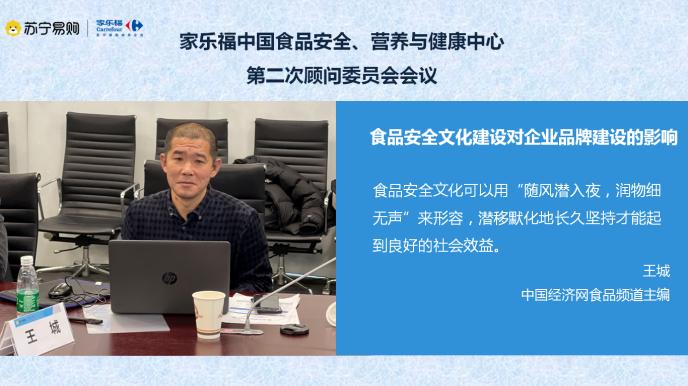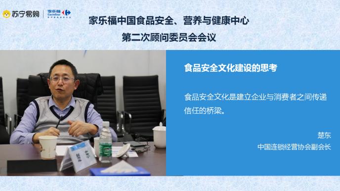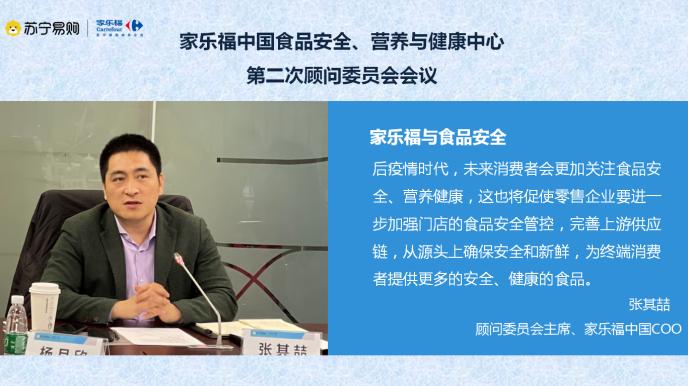 會議現場,顧問委員會主席、家樂福中國COO張其喆介紹,2020年新冠疫情給零售行業帶來了挑戰也帶來了機遇。疫情期間,家樂福承擔了民生流通主渠道的企業責任,率先做出了“穩物價、保供應、不打烊”的承諾,確保老百姓(行情603883,診股)的“菜籃子”、“米袋子”。后疫情時代,消費者更加關注食品安全、營養健康。作為零售企業蘇寧家樂福始終把保障運營合規,提升產品品質,贏得消費者信任,建立質量和食品安全文化作為工作重心,通過出臺食品安全紅線政策、審核和檢測嚴把關、管理體系升級、消費者教育等多種舉措,切實構筑食品安全防線。消費者可以直觀感受的是,家樂福門店的健康指導貨架、產品科普指南、線上營養直播、小福實驗室等等,內容涵蓋食品安全辟謠、消費者食品安全常識、減鹽、減糖、減油、合理膳食、蛋白質提高免疫力、全谷物、減少食物浪費等。
